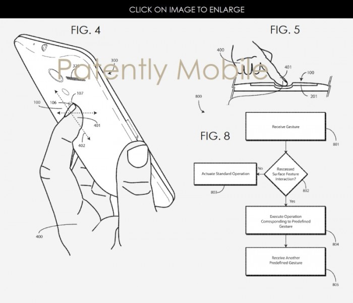 此外机身后背触控区域,用户能够手势来快速拜候某些设置和使用。例如,用户正在从屏幕上正在机身后背画“C”就能封闭/WiFi功能等等。这项专利于1年前就提交了申请,但曲到比来才获得美国商标和专利局审批通过。