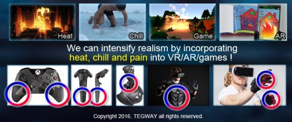 Tegway是一家矫捷热电安拆(F-TED)的制制商,成立于2014年9月,是韩国科技大学(KAIST)的分支布局,曾正在2016年研发出全球首款高机能的F-TED产物。针对强劲的VR市场需求,TEGway基于其 F-TED 手艺, 推出了「ThermoReal」热电安拆,使玩家正在体验 VR 或 AR时,能正在从中感遭到温度的冷热变化,以至痛苦悲伤。