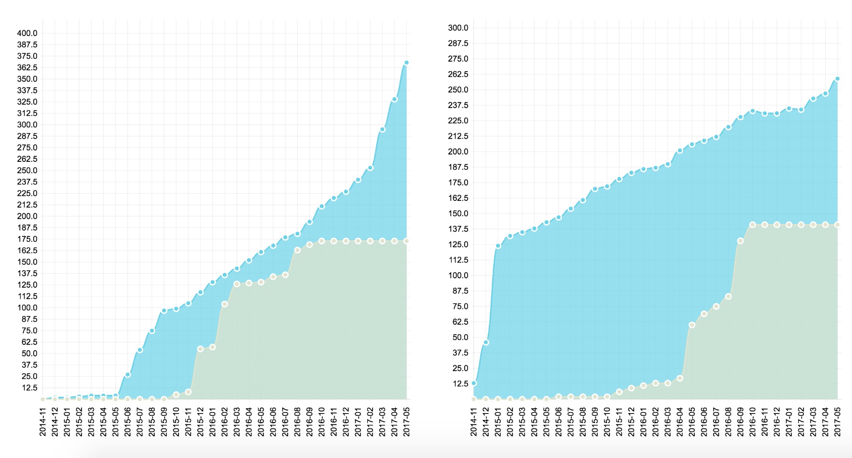 (左图为Librem 13,左图为Librem 15,蓝色部门暗示订单,绿色部门暗示出货)