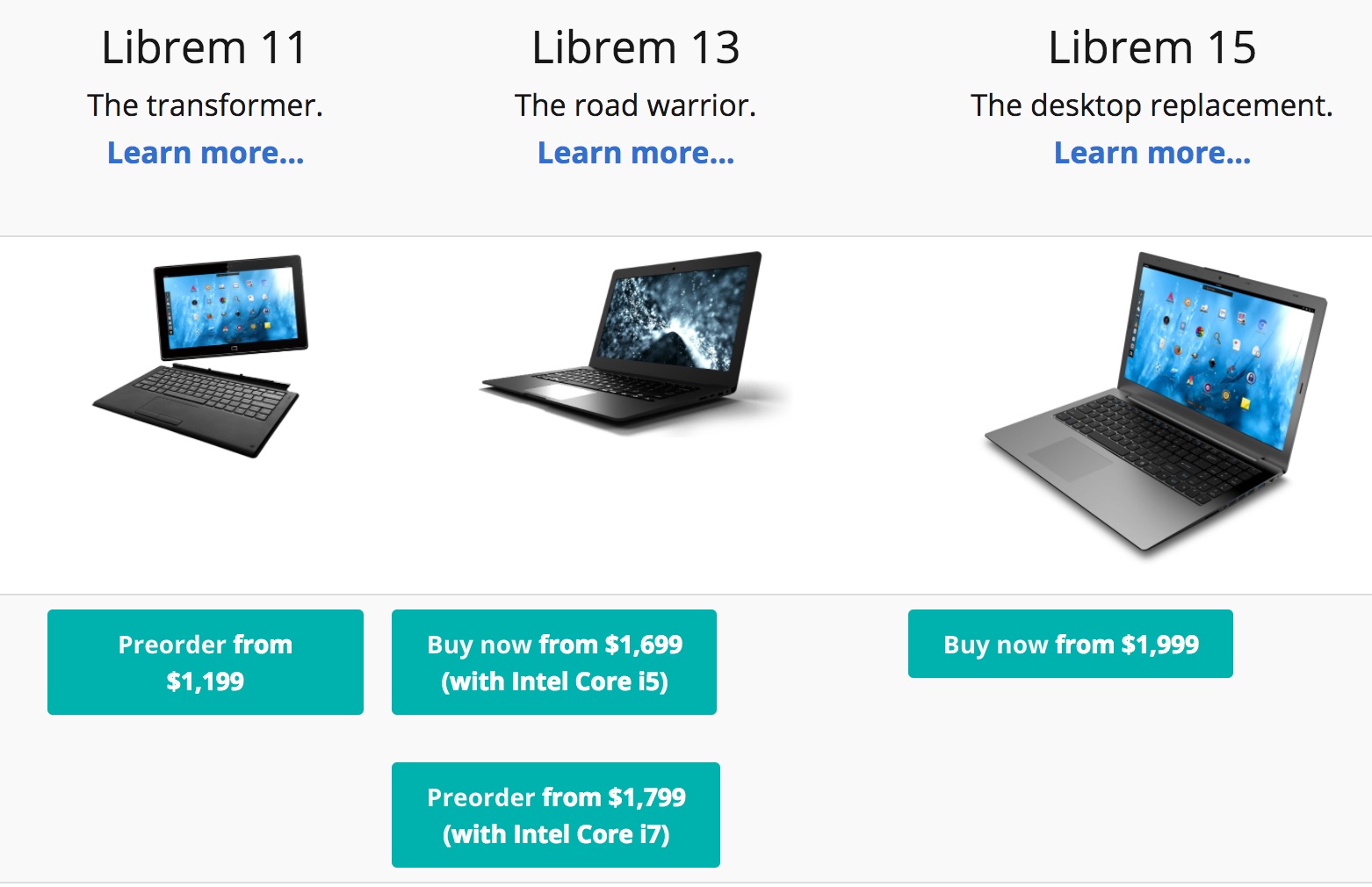 目前官网正在售三款电脑,别离为Librem 11、Librem 13和Librem 15。