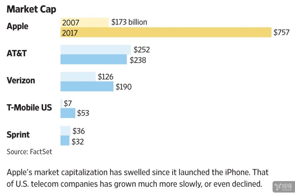 美运营商市值增加自IPhone推出后较着放缓