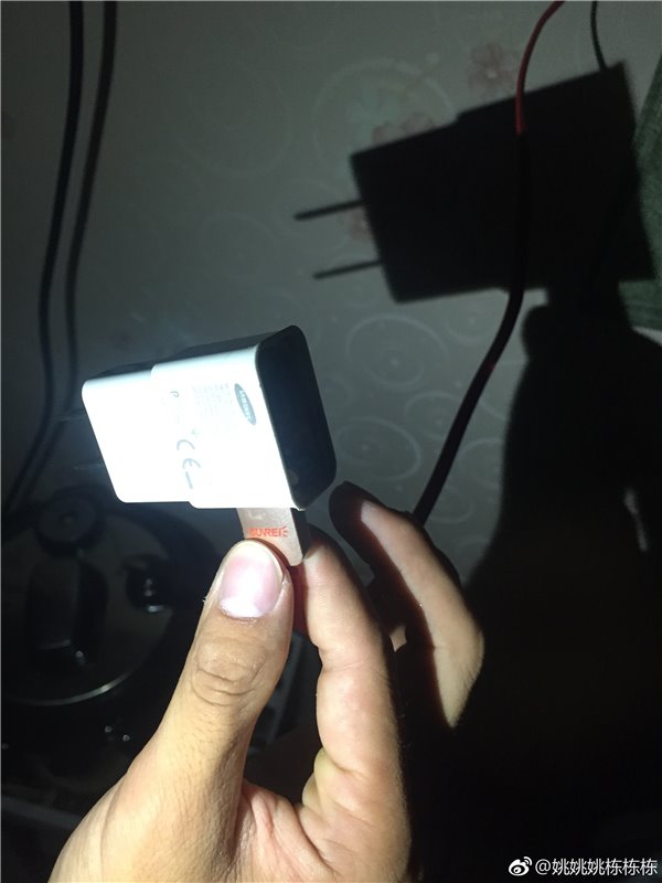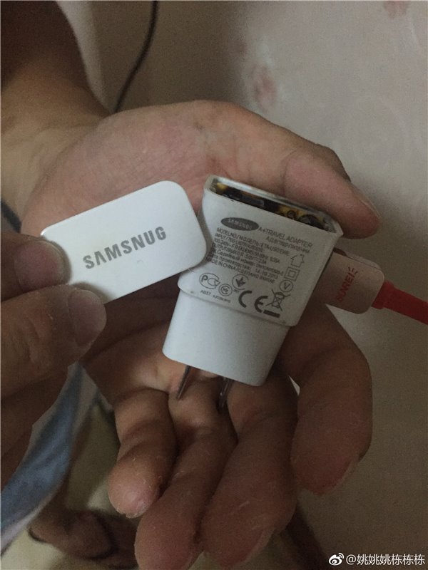 有网友爆料称,本人正在晚上利用三星充电器时俄然爆炸,后盖间接打到脸长进而导致家里停电,从图片上我们看到这款充电器采用了三星的典范设想。