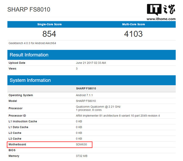 今天跑分网坐Geekbench的数据库中呈现了一款代号为FS8010的夏普新机。网坐相关消息显示,这款新机将会搭载骁龙630处置器,配备4GB运转内存,预拆Android 7.1.1系统。不外从跑分成就来看,骁龙630的表示取骁龙626比拟似乎并没有什么提拔,不外这可能是由于工程机的来由。