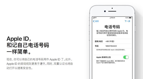 而正在此之前苹果只答应新注册用户将邮箱做为Apple ID,现现在,苹果正在更新了iOS 11系统后,用户也能够用手机号进行邮箱注册,如斯一来,Apple ID的平安性也大大提拔,不再那么容易被犯警窃取。
