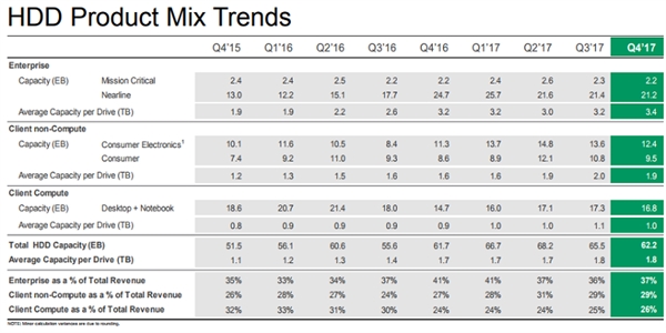 虽然希捷曾经不再发布硬盘出货量,可是我们仍然能够从相关数据估算。Q4的总出货容量是65.5EB,平均每块是1.8TB,折算下来的出货该当正在3800万块。
