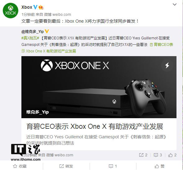 而按照微软Xbox微博动静,Xbox One X将力图国行全球同步首发。