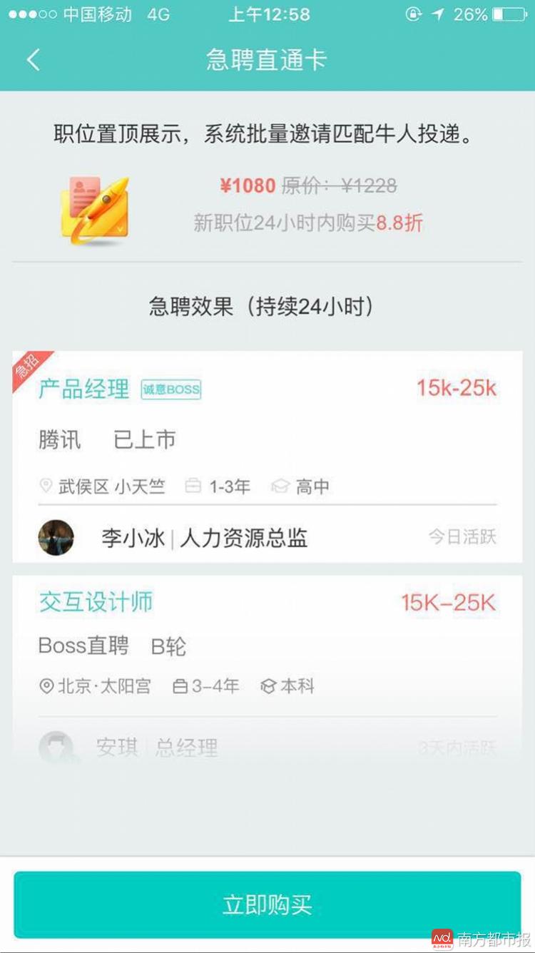 对于这一,南都记者将这一问题提交给BOSS曲聘CEO赵鹏。就正在南都记者扣问采访之后,南都记者当即收到BOSS曲聘app发来的一则通知,通知称: