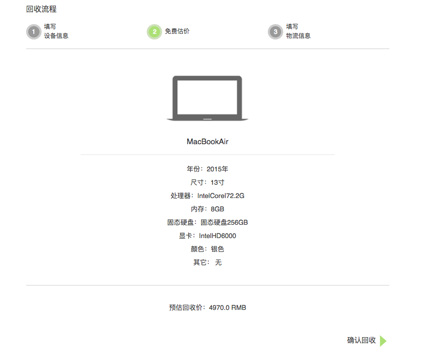 第一步选择响应的型号、制制年份、硬件设置装备摆设以及成色等消息;第二步要奉告目前的运做和概况磨损。最初一步填写物流消息,并抹去电脑里的所有消息。