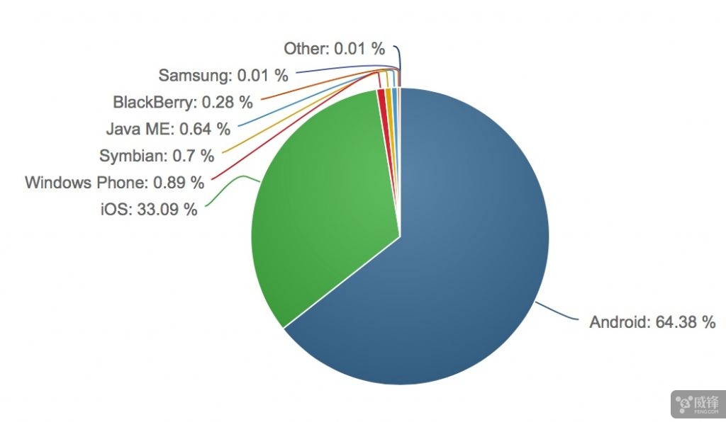 挪动操做系统方面,iOS 正在7月占挪动操做系统市场份额的 33.09%,低于 6 月份的 43.95%。比拟之下,Android 的市场份额为 64.38%,Windows Phone 为 0.9%,Java ME 为 0.64%。 iOS 的汗青最高记载是 2012 年 7 月的 65.94%。