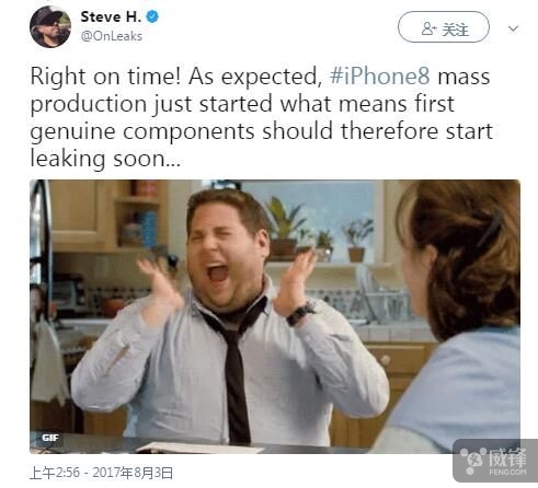 今日,据爆料大神 OnLeaks带来的新动静显示,新机iPhone 8的批量化出产曾经起头了。其正在推特上写道:“很准时!正如预期的那样,#iPhone 8大规模出产曾经起头,而这也意味着首批设备组件的近正在面前了……”
