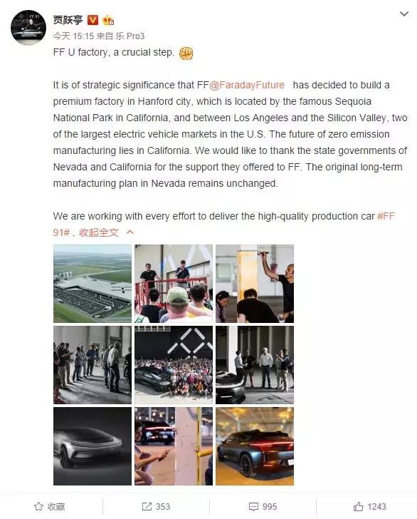 FF计谋决定正在汉福德市成立一个高端工场,该厂地位于加利福尼亚出名的红杉国度公园,位于和硅谷之间,美国两个最大的电动汽车市场。将来,零排放制制正在。