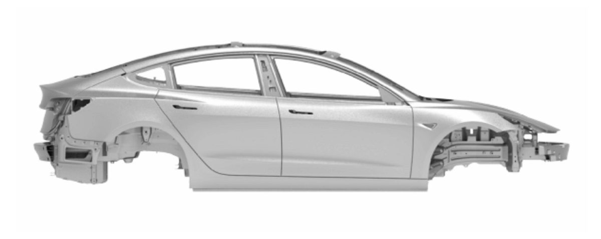 维修指南显示,Model 3白车身次要由四种材料构成:铝材(灰)、低碳钢(蓝)、高强度钢(黄)、超高强度钢(红)。