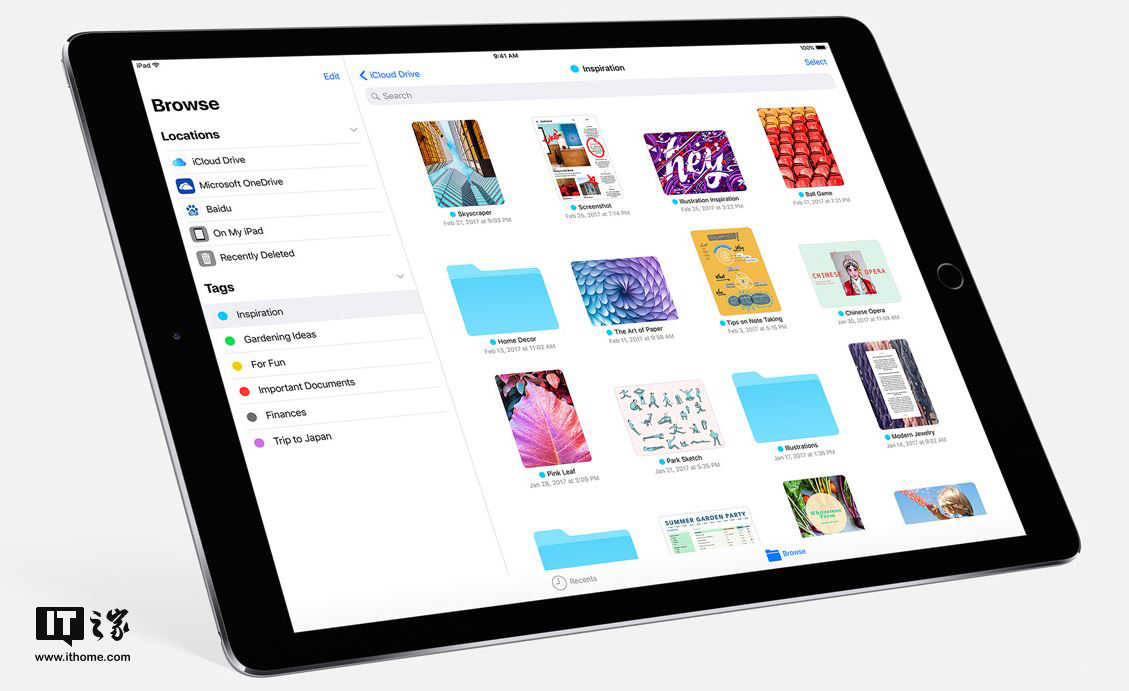 IT之家6月6日动静苹果今天凌晨发布了全新的iOS11系统,为iOS系统终究带来了Files文件夹或文件办理器功能,目前看来iPad版的文件办理器功能比力丰硕,支撑使用间文件挪用和拖拽等操做,而且集成了一系列云存储网盘办事,此中就包罗微软的OneDrive。