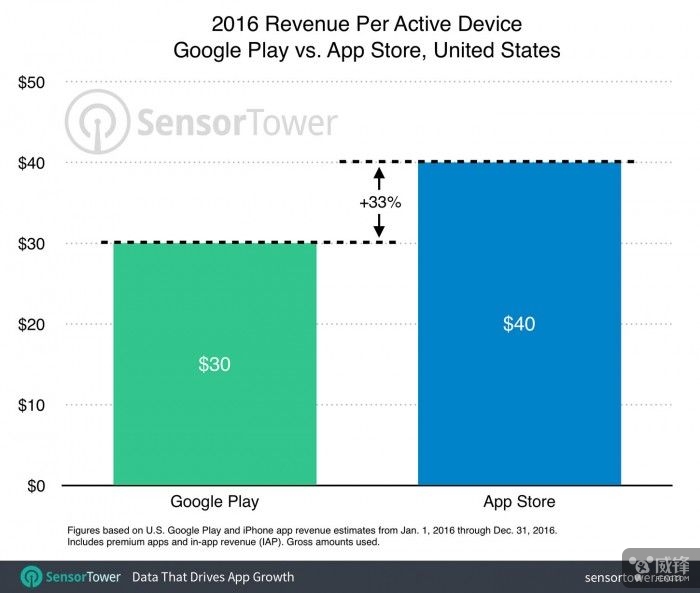 本周四,挪动使用数据阐发公司 Sensor Tower 就针对美国 Android 用户和 iPhone 用户进行查询拜访发布了一份。显示,客岁美国 Android 用户平均从 Google Play 下载了 42 款使用,而 iPhone 用户则平均从 App Store 下载了 33 款使用。不外正在使用破费上,两者则反了过来,Android 用户的平均破费比 iPhone 用户少了33%。