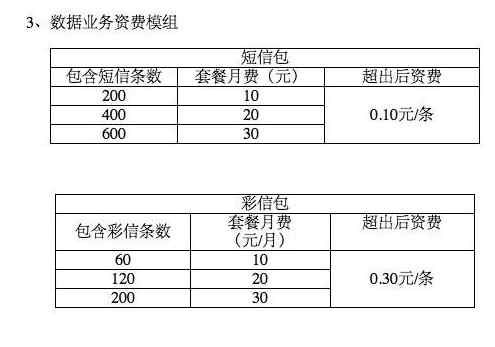 此中,挪动数据流量从40元400M到280元10G共7档;全国长市漫一口价语音从48元200分钟到408元4000分钟共7档;数据营业包罗短信和彩信各3档。