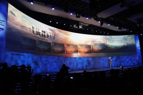 曲面是本年CES的绝对配角,三星推出全球首台最大的105吋曲面UHDTV时激发了一阵冷艳之声,LG推出的两款分歧型号的4KOLED曲面电视也惹人瞩目。