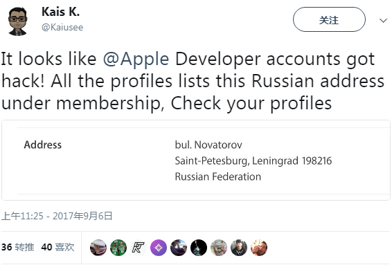 有人正在 Twitter 上质疑苹果开辟者网坐账户被入侵