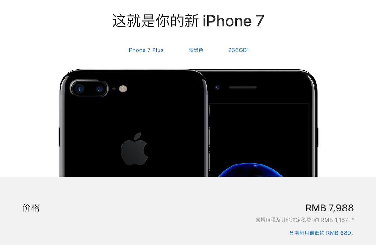 (目前正在售最贵的版 iPhone 7 Plus,图片来历:Apple)