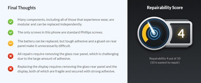 iFixit暗示屏幕分手虽然有难度,但最少不会一撬就碎,之前的Amoled因为太薄,很容易分手时就碎掉了。