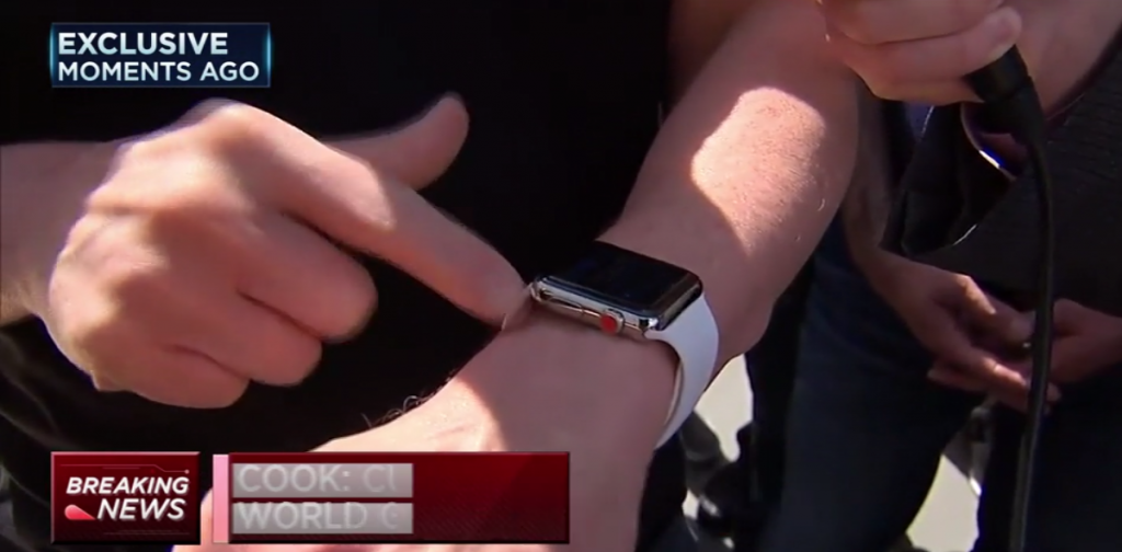假设红色的数码表冠是 LTE 天线,那么库克有可能一早就测试过这款设备了(下图),最早能够逃溯到初代 Apple Watch 推出时。
