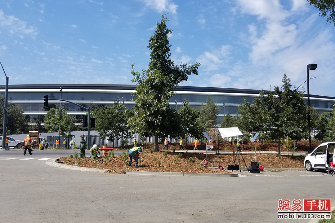 苹果秋季发布会探营 ApplePark外围-正正在施工的人员