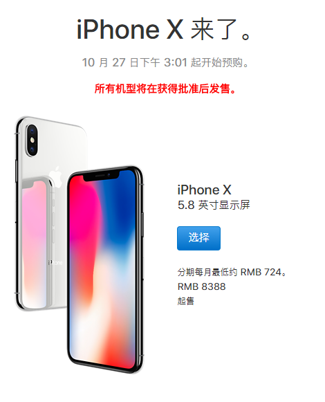 官网显示,iPhone X于10月27日下战书3:01起起头预购,11月3日上市。