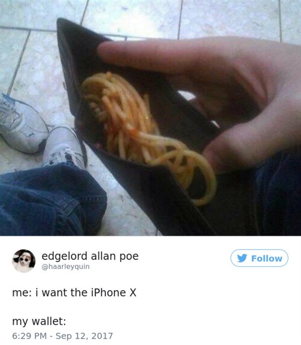 全面屏、无线充电、Face ID、双面玻璃……践约而至,但昂扬的价钱仍是让不少网友了自黑、自嘲模式,这不只发生正在国内,国外亦是如斯。