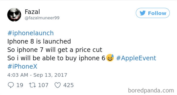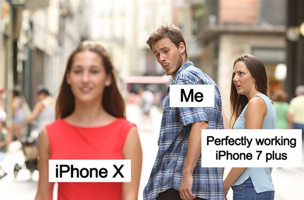 颁布发表iPhone 8时的我 VS 颁布发表iPhone X时的我。PS:我的心里毫无波涛