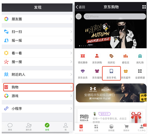 京东方面暗示,消费者能够正在本人的微信“发觉”页面点击“购物”,进入京东页面点击“京东手机”后,点击iPhone 8新品上市的告白,即可看到挪动专项版的iPhone8售卖消息,点击“当即采办”即可完成预购下单。具体操做示例如下: