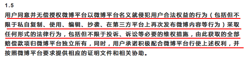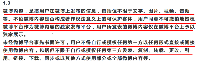 再之后,就是微博正在《微博办事利用和谈》中添加了微博内容的原创独家性。