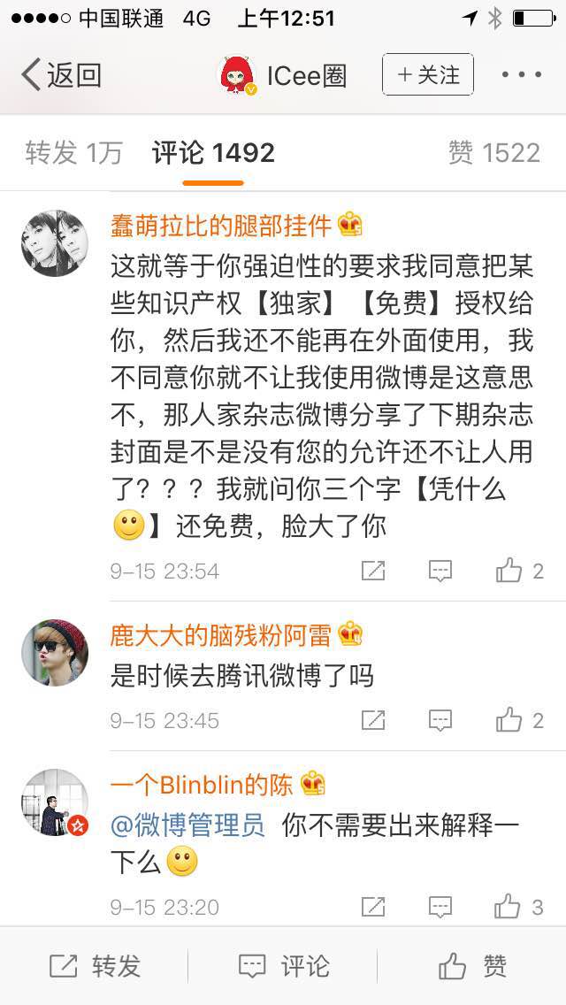 微博让用户“选择”:要么同意我的和谈,将原创内容的版权归属于我,要么别利用微博产物。