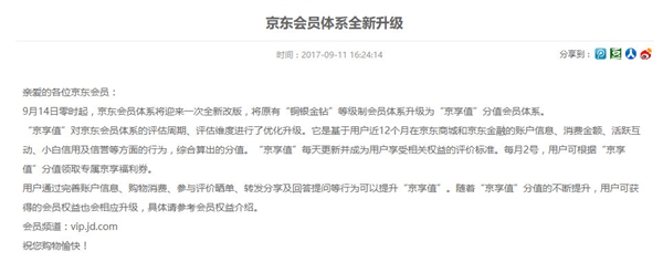 按照京东发布的通知,这一全新会员系统已于9月14日零时起上线。