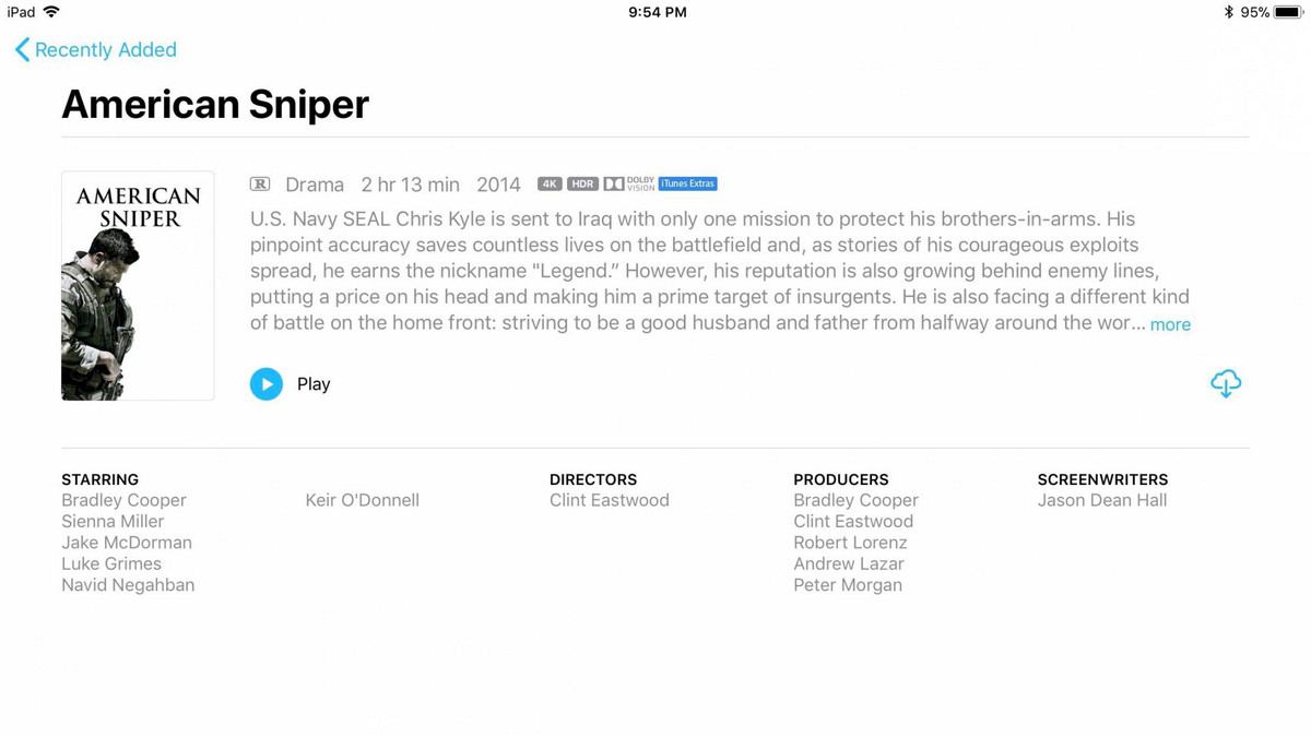 从上图能够看到,iTunes 中,《American Sniper》这部片子的标签同时呈现了“4K”和HDR字样。
