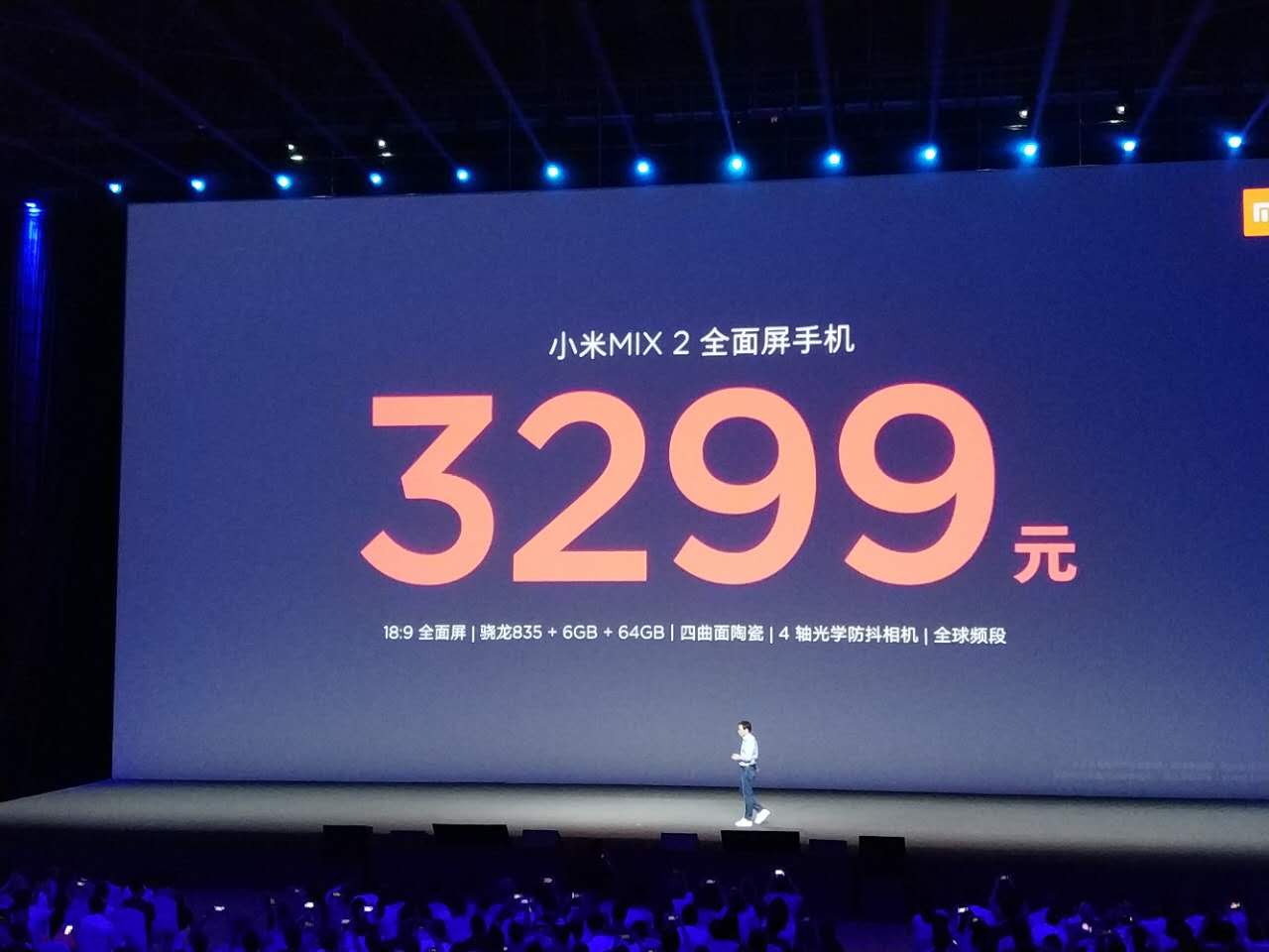 正在售价上,6GB+64GB版本3299元;6GB+128GB版本3599元;6GB+256GB版本3999元。小米颁布发表,MIX2今日起预订,9月15日发货。