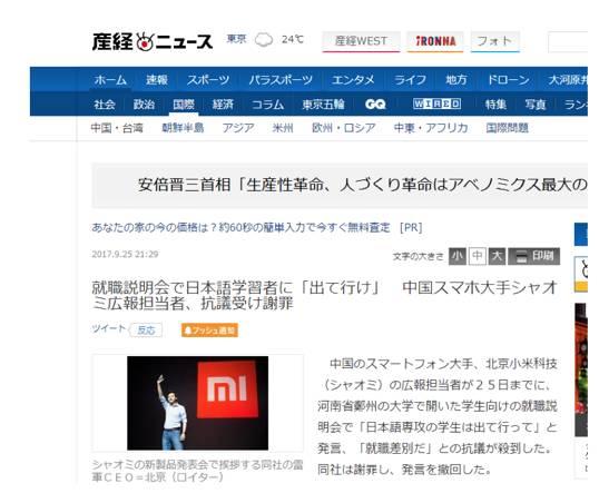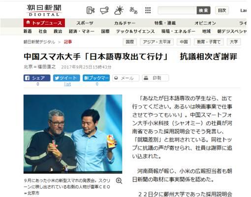 ¡¶²ú¾¾ÉÊ¡·9ÔÂ25ÈÕ°ä·¢ÌâΪ“ƸÇë»áÏÖ³¡ÒªÇóÈÕÓïÉú¹ö¿ª£¬ÖйúÖÇÃîÊÖ»ú¾ÞͷСÃ×Ðû´«²¿·Ö´øÁ챨ǸÅâ×ÄÎÄÕ¡£