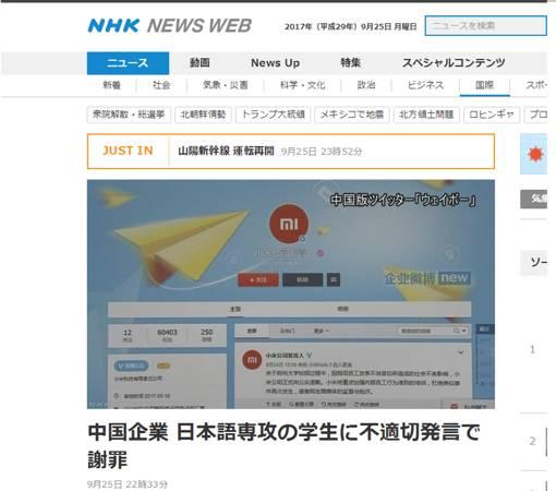 ÈÕ±¾NHKÌâΪ“ÖйúÆóÒµ¾ÍÕë¶ÔÈÕÓïÉúµÄ²»Í×½²»°Åâ×ÄÎÄÕÂÖгƣ¬Ð¡Ã׿Ƽ¼ÒªÇóÈÕÓïÉú³öÈ¥µÄ½²»°ÕýÔÚÖйú¹úÄÚÊÕ¼¯Éϼ¤·¢¶ÔСÃ׵ĺݶñ¡£ÊÜ´ËÓ°Ï죬СÃ׿Ƽ¼24ÈÕ¹«¿ª±¨Ç¸£¬²¢ÉùÑÔÆä¾ø¶Ô²»´ðÓ¦¸ÃÉç´æÕýÔÚµÄÏÖÏó¡£