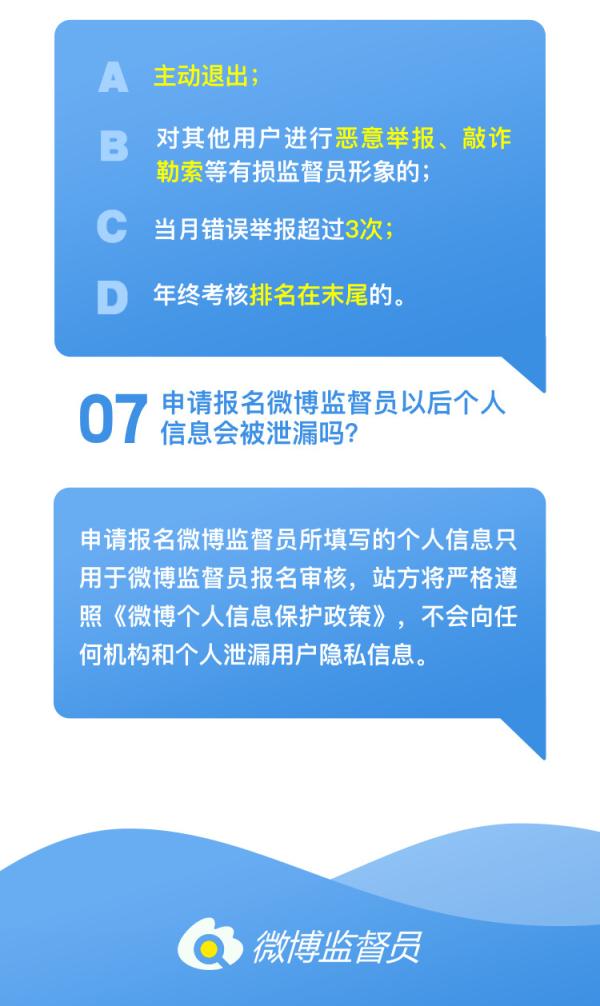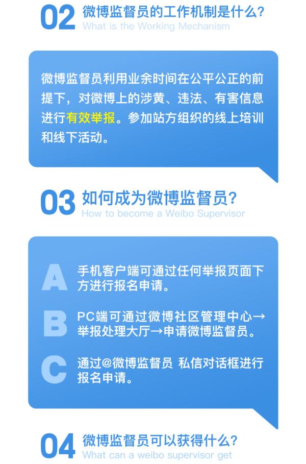 微博办理员9月27日动静,为落实企业从体义务,强化网平易近,净化微博社区情况,无效措置微博上的涉黄、违法及无害消息。正在市网信办的指点下,微博特地成立了社区员机制,面向所有用户公开招募1000名微博员。微博员通过特殊的举报机制针对微博上的涉黄、违法及无害消息进行举报处置,坐方将按照举报统计向及格的微博员按月发放网费补助,并赠送微博会员。同时我们对每月无效举量最多的微博员赐与物质励,品包罗苹果手机、国产手机或笔记本电脑等。欢送泛博网友积极报名加入微博员,报名体例及其他相关事宜请参考如下: