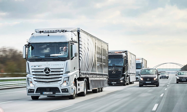 卡车结敌手艺借帮于戴姆勒的Connected Highway Pilot系统实现从动驾驶。该系统通过WiFi链接车队里的前后车辆,实现互相传送车辆消息。