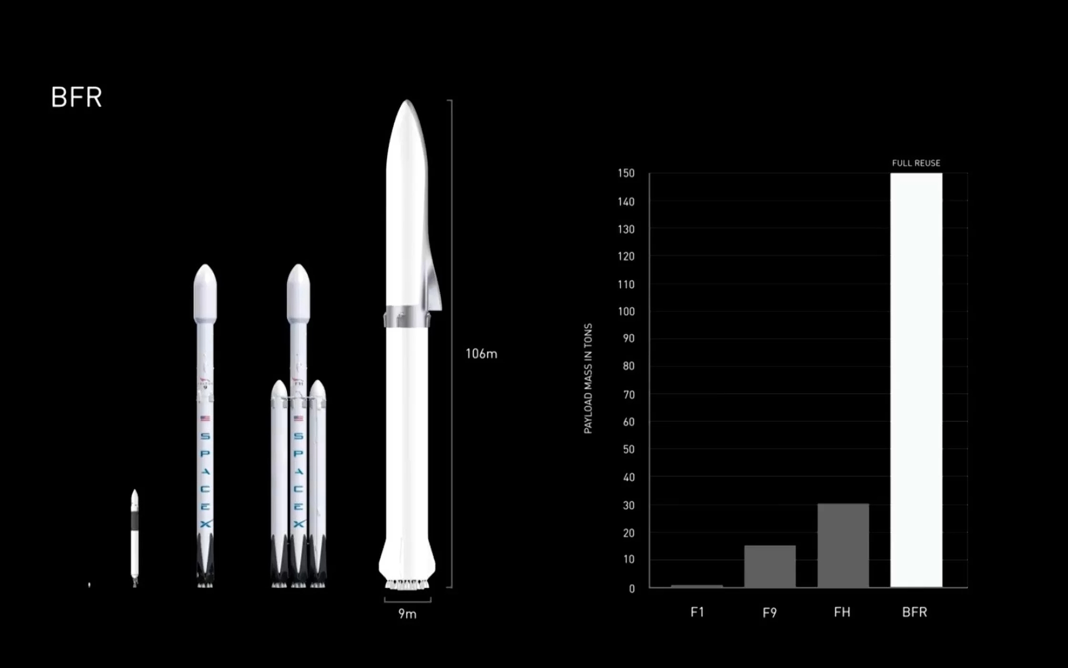 SpaceX公司设想的BFR火箭体型将更大,并且将比公司的其它火箭愈加强大。