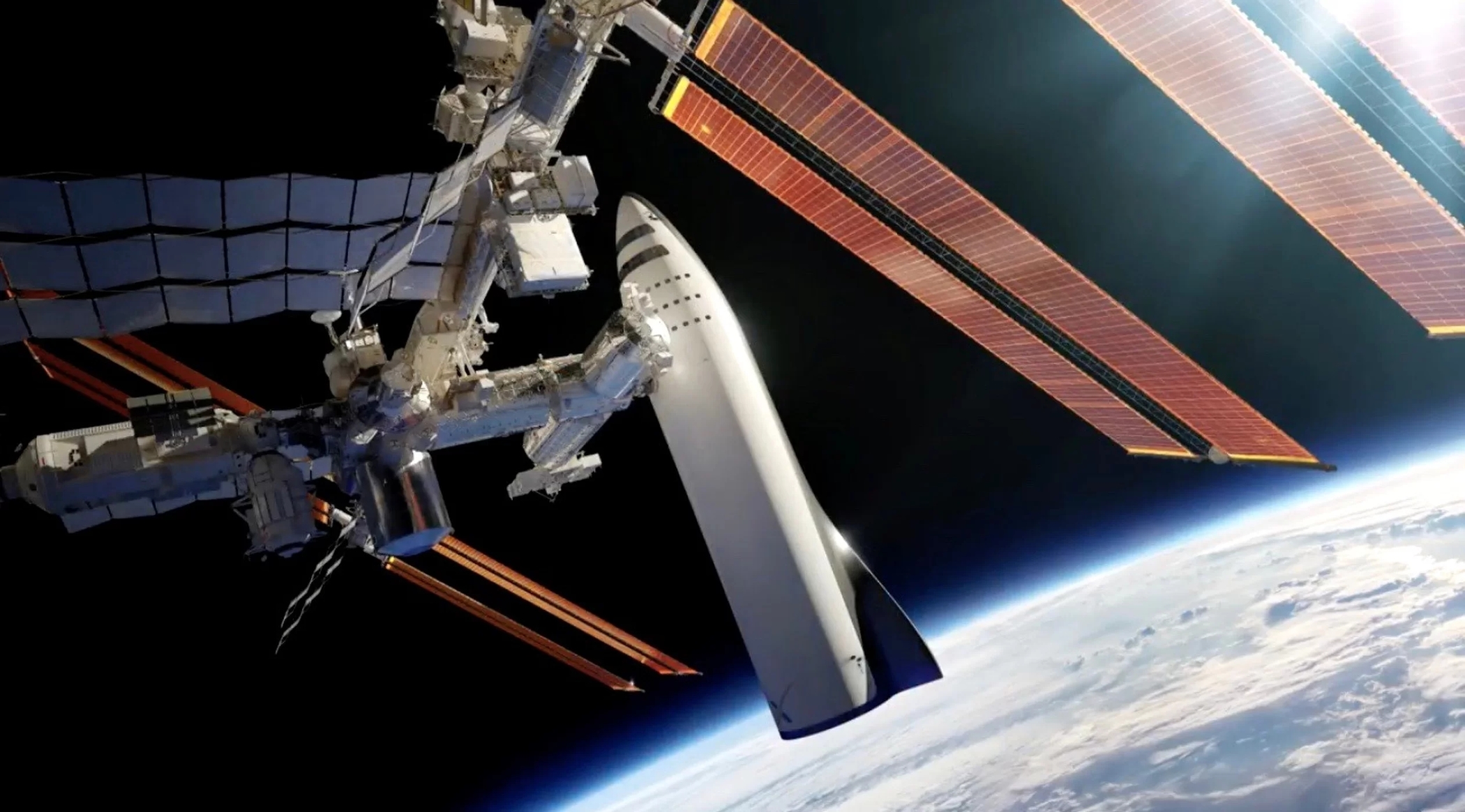 艺术家用插图描述了BFR飞船取国际空间坐接轨的情景。