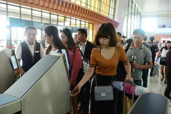 国庆客流即将到来,昆明坐、昆明南坐从9月29日起启用自帮验票通道,持二代身份证和蓝色车票的搭客能够“刷脸”进坐,目前该系统处正在试运转阶段。这是昆明铁局内初次利用脸部识别验证验票,不只无效包管票、证、人合一,并且比人工识别效率更高,将更好地办事即将到来的国庆客流高峰。?