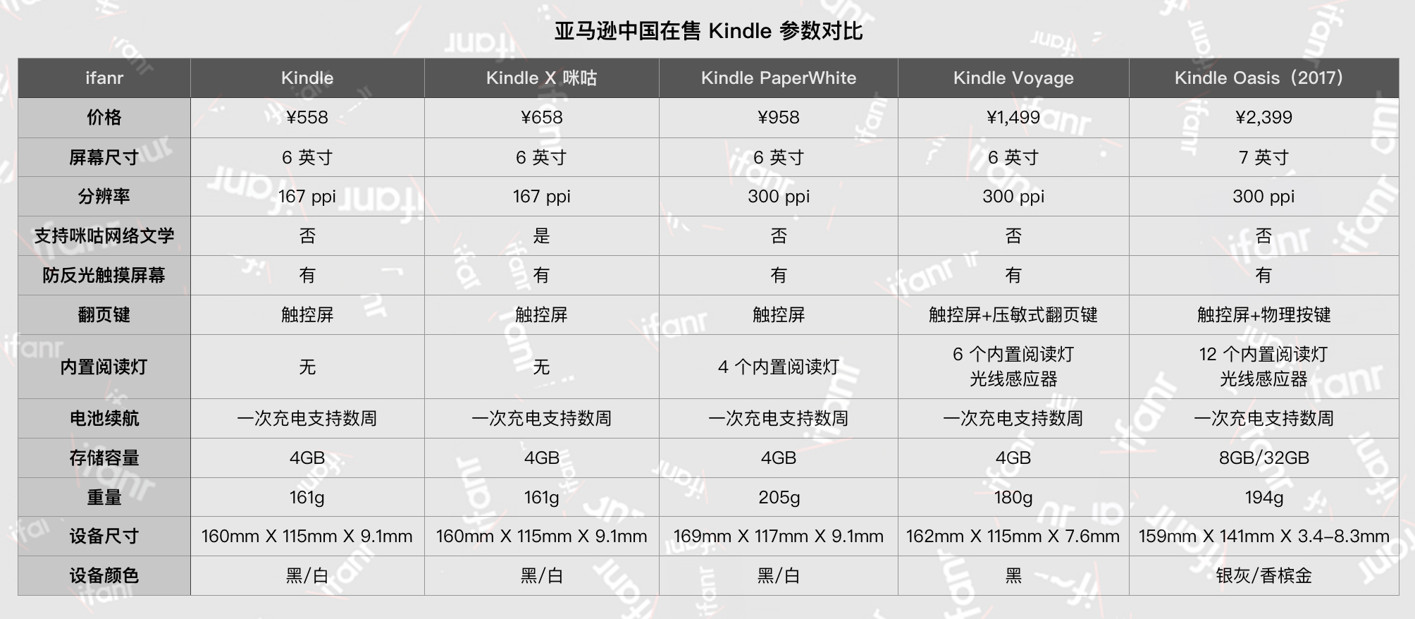 目前,2017款Kindle Oasis曾经正在亚马逊官网、Kindle旗舰店等渠道预售,8GB版本售价为2399元;32GB版本售价为2658元;还有喷鼻槟金奢华礼物套拆,包含32GB版新款Kindle Oasis(喷鼻槟金色)、立式套以及200元Kindle券,售价为3168元。