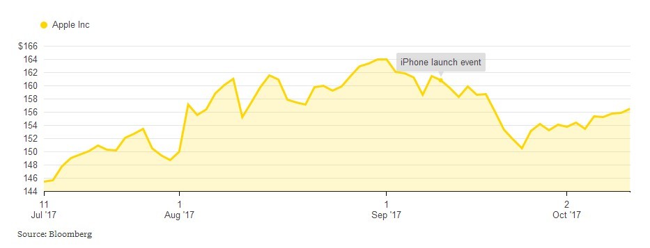 苹果股价正在9月新iPhone发布会竣事后下挫,但比来逐步收回部门失地