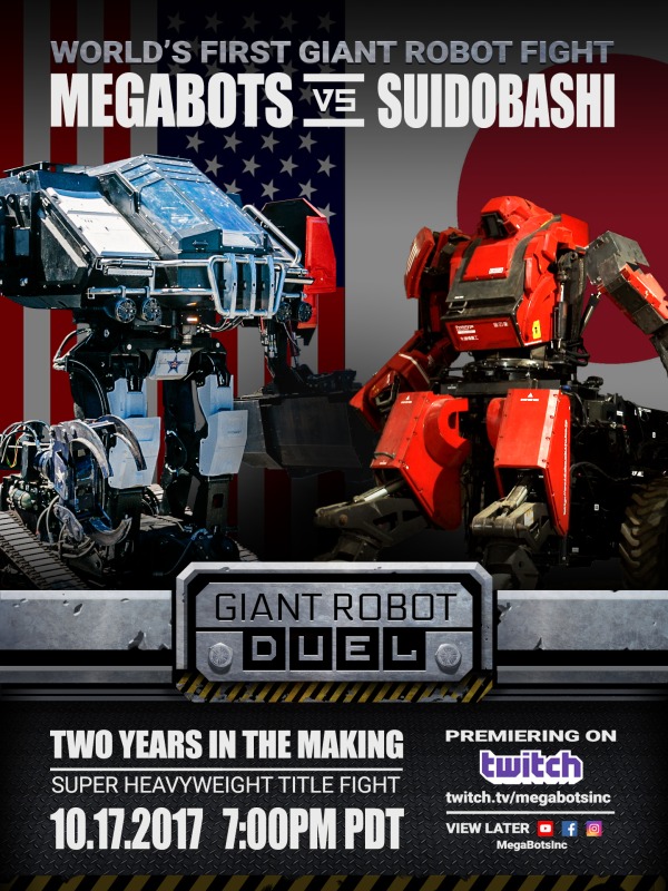 2015 年 7 月 1 日,MegaBots 通过 YouTube 发布了一个向日本水道桥沉工挑和的视频,视频中 MegaBots 提出采用油漆弹互射或者近身肉搏的体例进行决斗。一周之后,水道桥沉工 CEO 兼 Kuratas 的开辟者仓田光吾郎正式出头具名回应接管挑和,同时但愿用肉搏和的体例。
