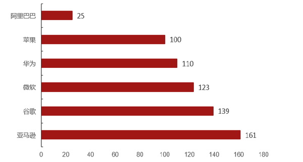 全球次要科技巨头2016年研发投入(亿美元)。数据来历:Faceset、招商证券。