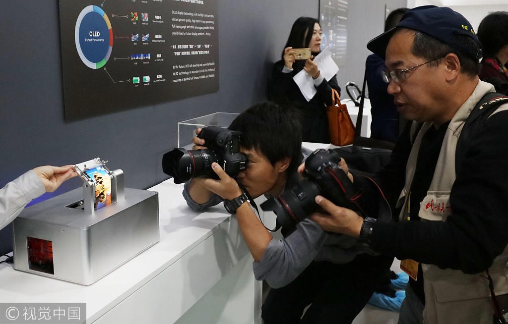 2017年10月13日,记者感触感染京东方柔性屏产物。