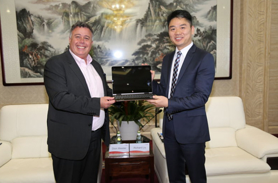刘强东取惠普CEO Dion Weisler互赠礼品