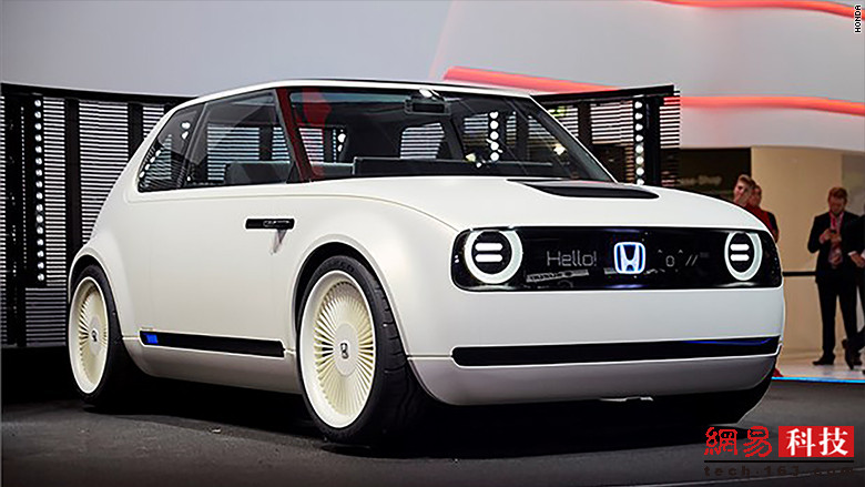 本田的电动汽车看起来也像是可爱的概念车,但本田许诺正在将来几年内销往欧洲。本田电动汽车的概念车比Honda Fit要短10厘米,看起来有点像上世纪70年代的Civic。车头灯之间的屏幕能够显示外面的消息。