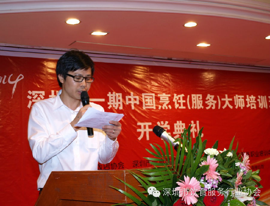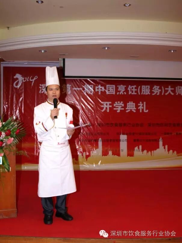 5月28日下午,2014深圳第一期“中国烹饪(服务)大师培训班”在深圳竹园宾馆举行了隆重的开学典礼。中国饭店协会副会长、深圳市饮食服务行业协会会长邹洪女士,中国饭店协会餐农对接采购办公室主任单斌先生等领导嘉宾以及来自深圳市各大餐饮企业的总经理、行政总厨、厨师长共65名学员参加了本次开学典礼。