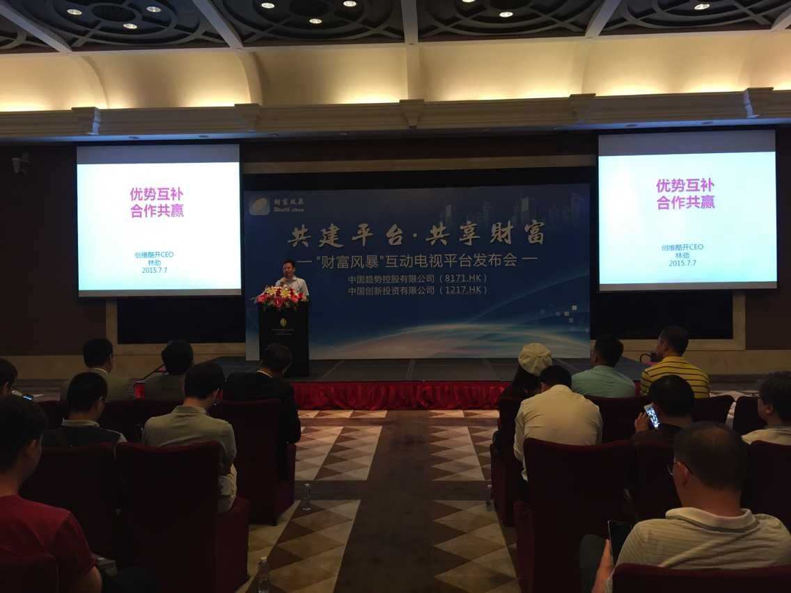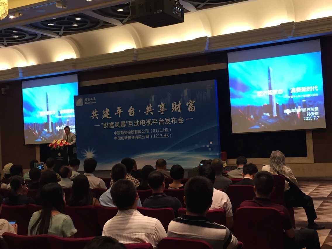 记者日前从香港联交所上市公司中国趋势控股有限公司(中国趋势,股份编号:08171.HK)与中国创新投资有限公司(中国创新,股份编号:01217.HK),联袂举办的“财富风暴”互动电视平台发布会了解到,中国趋势与中国创新隆重推出中国第一家消费全返、财富倍增的O2O互动电视平台。在电商行业竞争的一片红海中,“财富风暴”打出的“消费全返”、“财富倍增”口号无疑吸引了众多的眼球,各方媒体都前来一探究竟。会前,已有众多嘉宾向工作人员询问平台的详细情况,可见“财富风暴”着实是卖了个大关子。